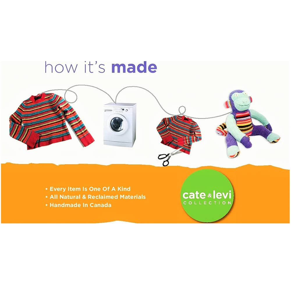 Each puppet is made from reclaimed sweaters whose colours and textures are individually selected. Not only is this process environmentally responsible, it ensures each toy is one of a kind!