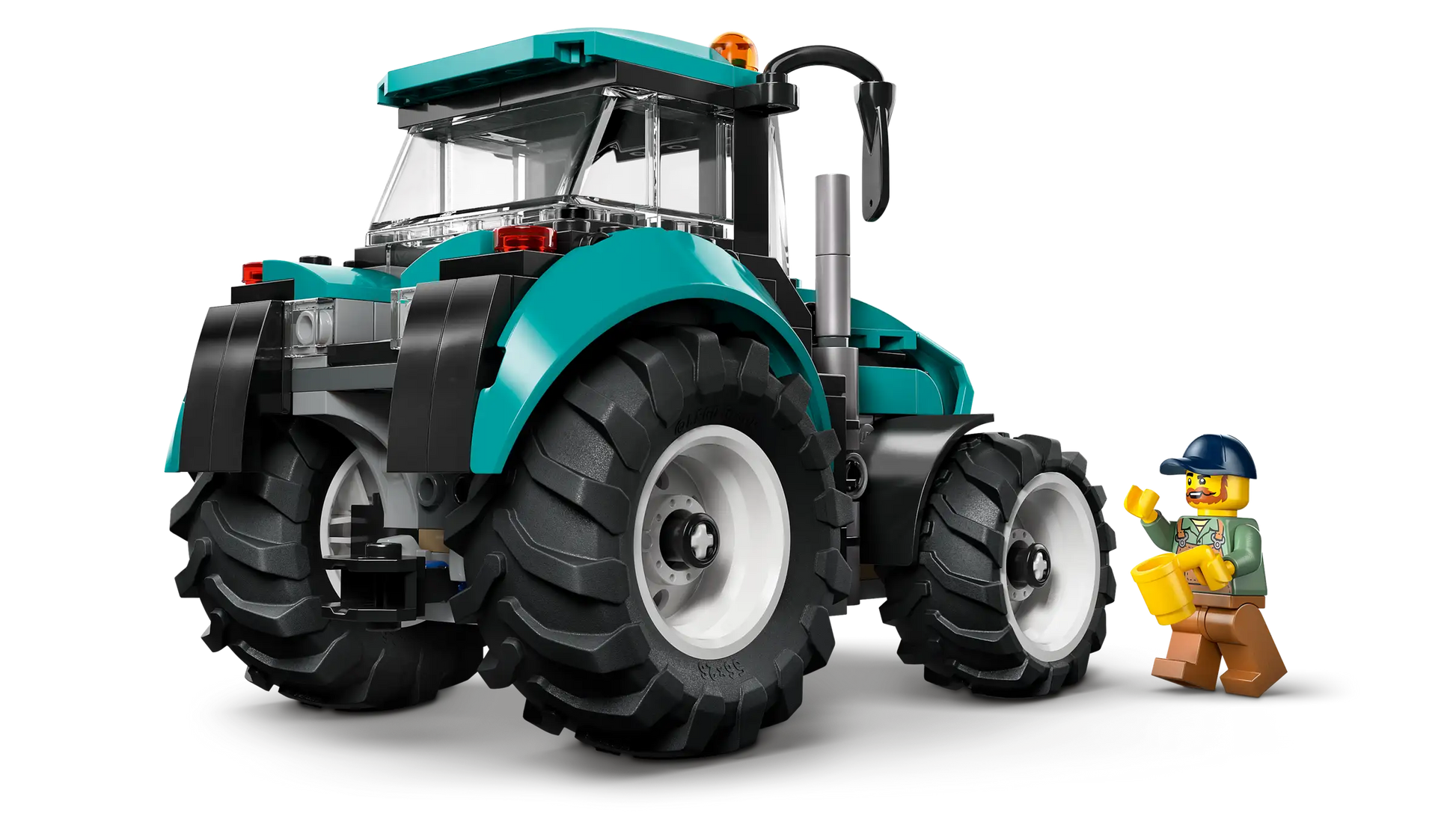 - WHAT'S IN THE BOX? – This LEGO® tractor set includes everything kids need to build a toy farm tractor with 4 largerubber tractor tires and a fresh teal color scheme, plus a farmer minifigure