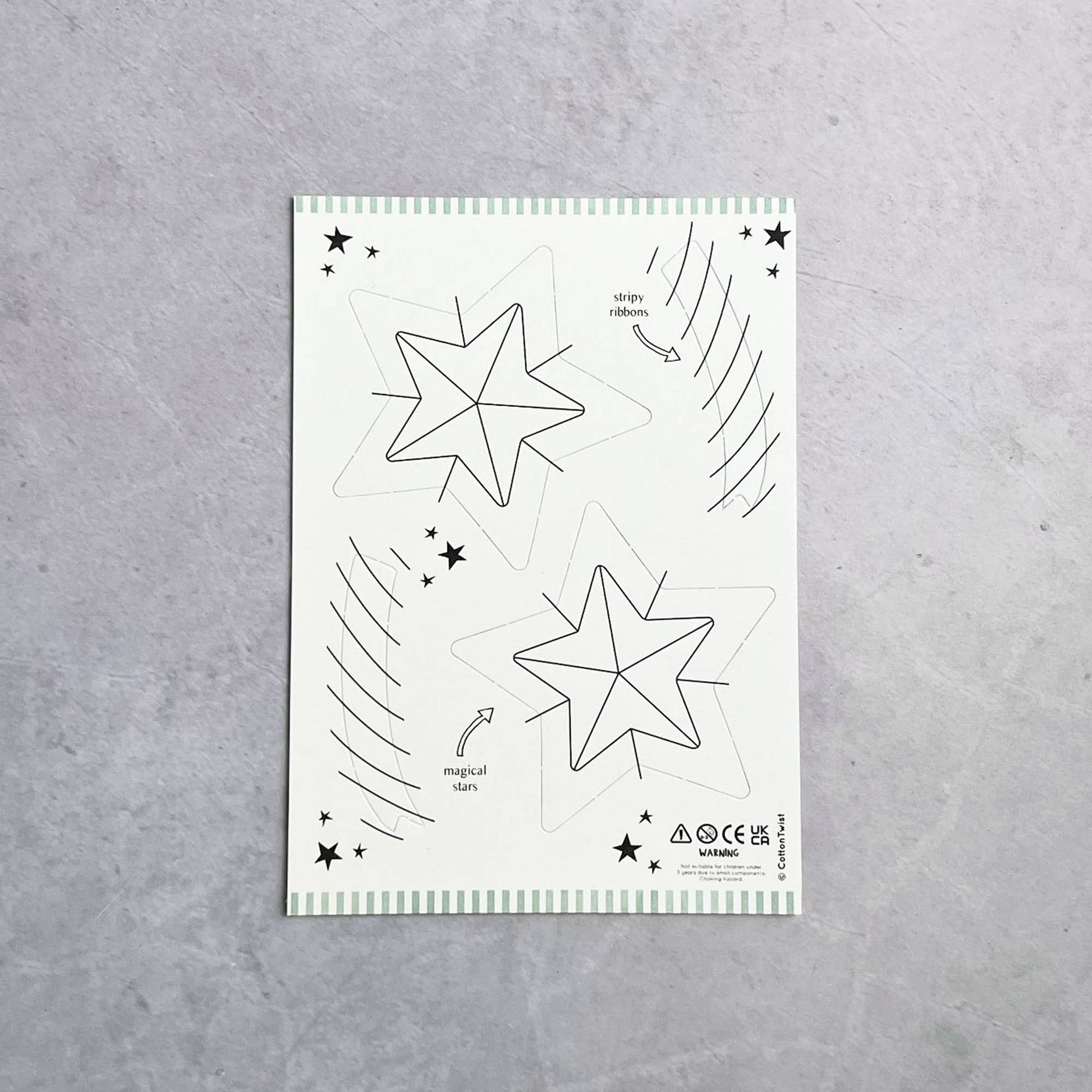 Children can colour the star & ribbon cut outs with their chosen pattern, then it's time to construct their wand. Once the stick & ribbons are taped on, the stars can be stuck together. Beads can be added to the base of the ribbons for additional effect. Time to wave those wands & spread the magic.