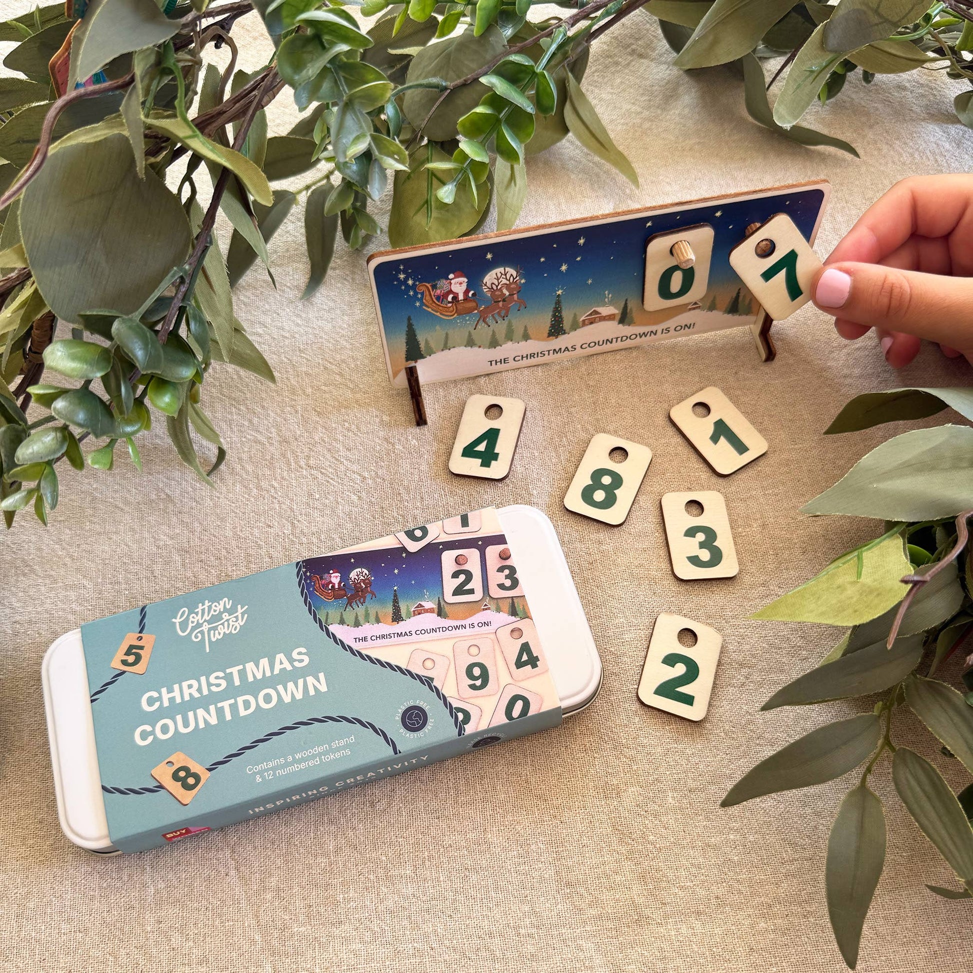Make the countdown to Christmas even more exciting with our Christmas Countdown Chart! This beautiful tin includes a wooden stand, featuring a festive scene that brings the magic of Christmas to life. The set also includes numbered wooden tokens to mark each day leading up to the big day, creating a fun and interactive way for children and adults alike to celebrate the season. A perfect family tradition, this advent chart will become a cherished part of your holiday celebrations year after year. Our countdown kit is made with sustainable materials and is 100% plastic free, ensuring that your child