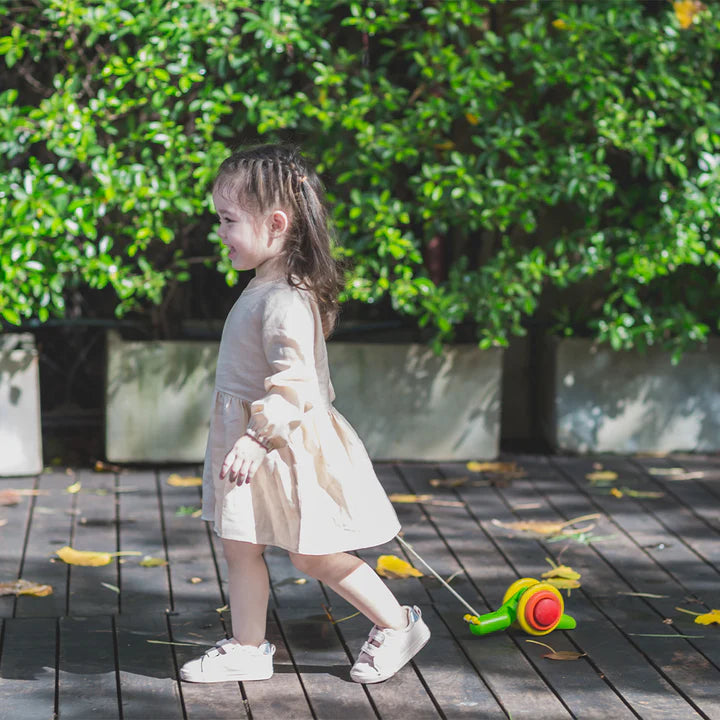 - Both balance and coordination are developed as children practice walking and adventuring on their own while pulling the snail along.
