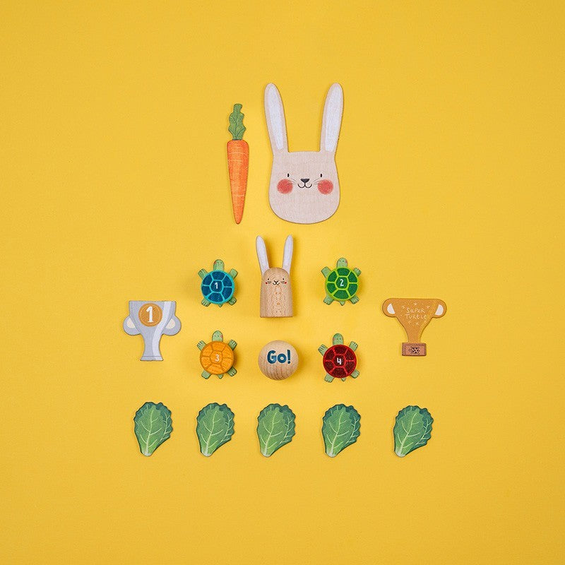 A very fun cooperative game inspired by the fable of the hare and the tortoise, from 5 years old. Sustainable game made of cardboard and wood. Made in Barcelona.