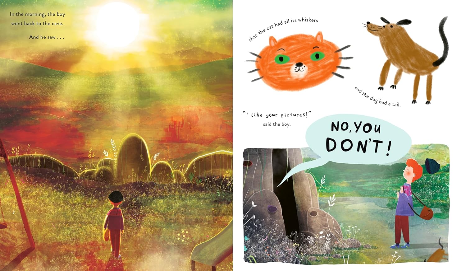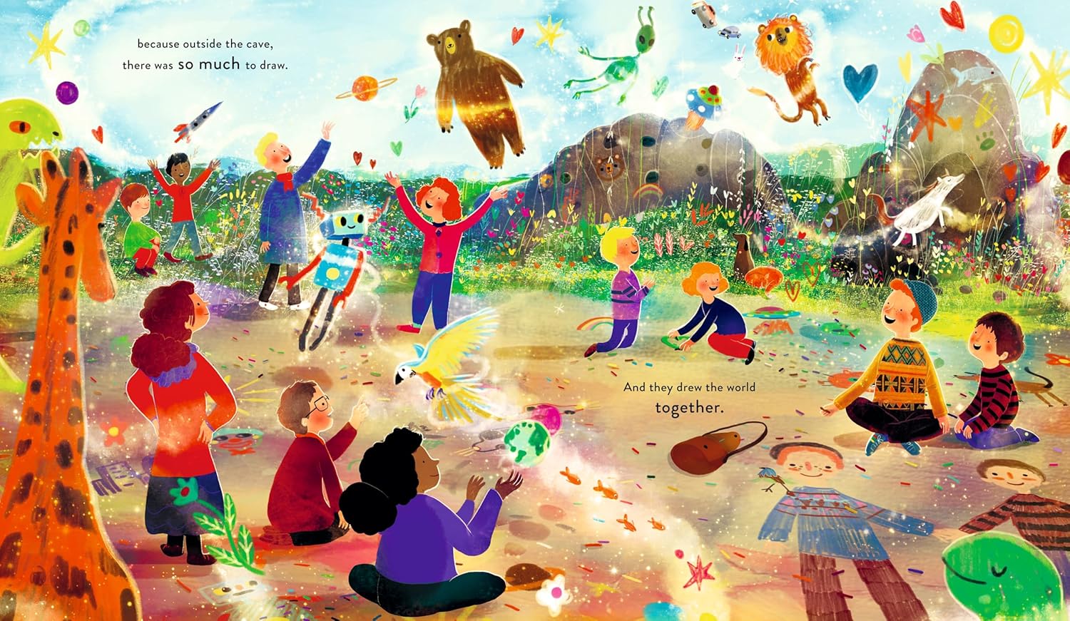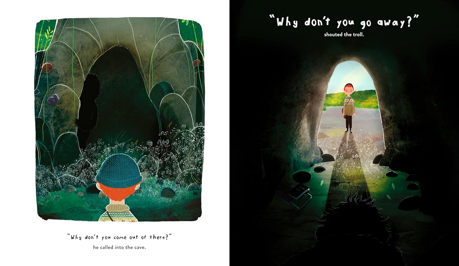 But one child cannot turn his back on the troll at the edge of the playground. One day, he takes his chalk up to the mouth of the cave. He draws a flower with every petal colored in but one and leaves the chalk behind. The next day, the flower has been completed. Day by day, the boy and the troll finish each other's drawings, until they each draw a portrait showing a boy holding hands with a fierce, scary troll. “But you're not a troll,” says the boy. “You’re a boy—just like me.” Patience, kindness, and the power of art win out in the end: the two boys wordlessly draw together. Soon all the other children gather to join in with the game. Everyone forgets that there was a troll inside the cave. Because outside the cave, there is so much to draw. Award-winning artist David Litchfield’s illustrations bring life and color to this gentle tale of hope and friendship by Anne Booth.