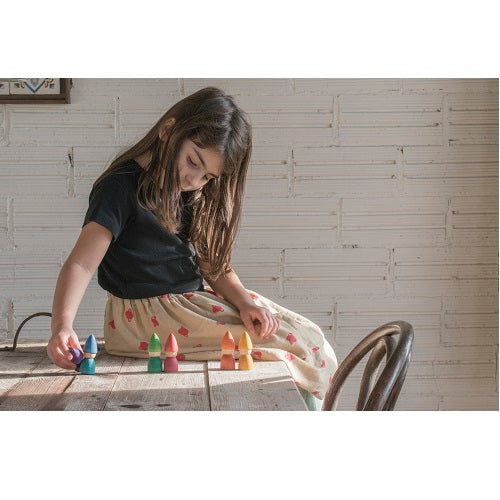 GRAPAT provides material without instructions, open-ended and autonomous play. Their only premise is to let children play, slowly, without time limits. Grapat hand crafts materials that encourage, invite and stimulate the creation of invented little worlds. Grapat is made following traditional processes, in the old way, with thick soft raw materials, natural dyes which let the wood veins be seen and vibrant coloured waxes and oils that slightly shine. The products are painted by hand, homemade, surrounded by nature and many children nearby that inspire the makers daily.